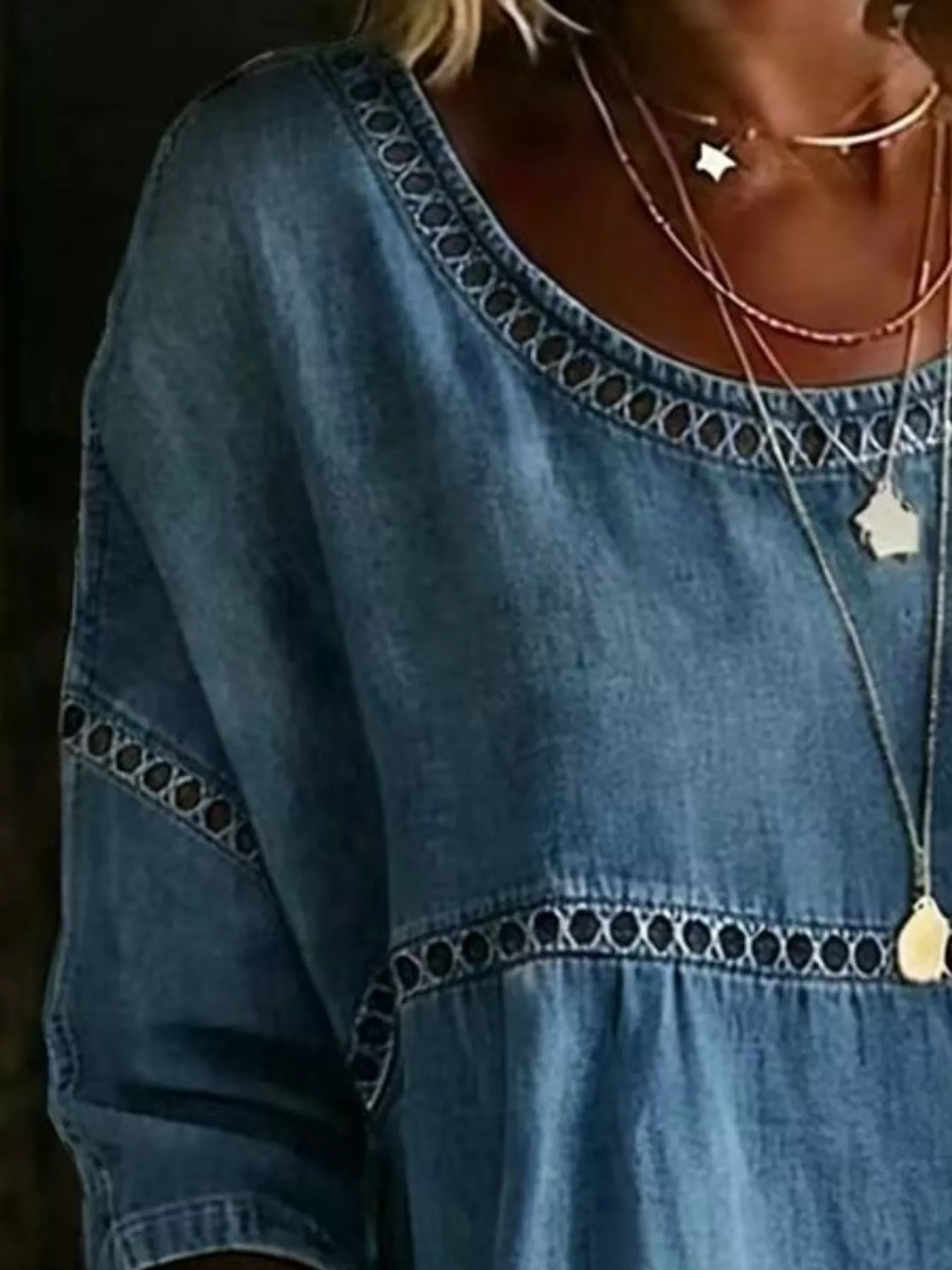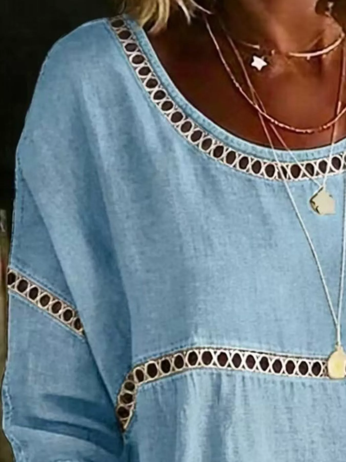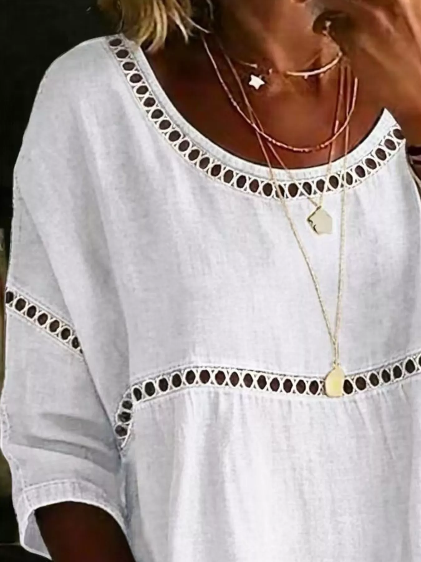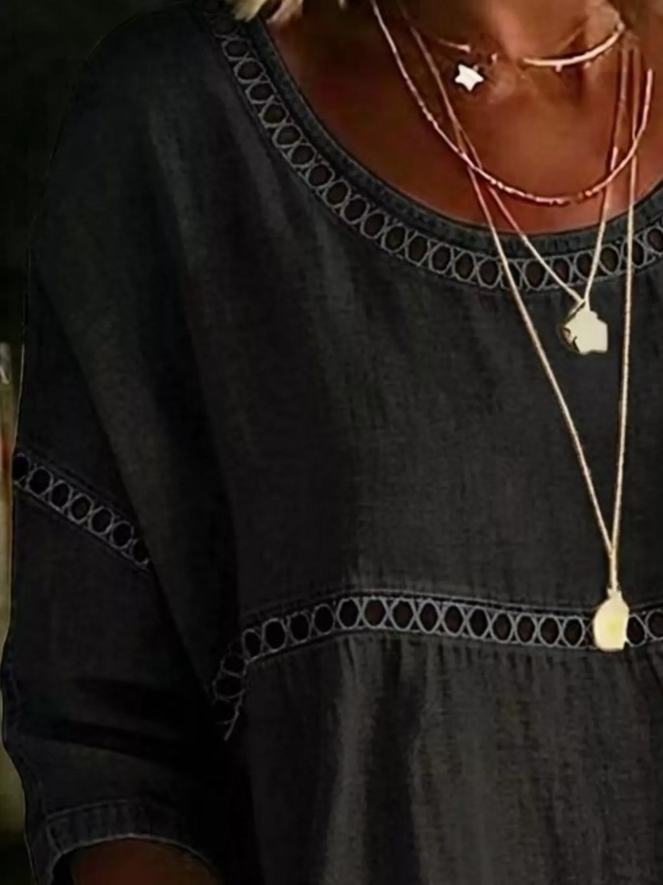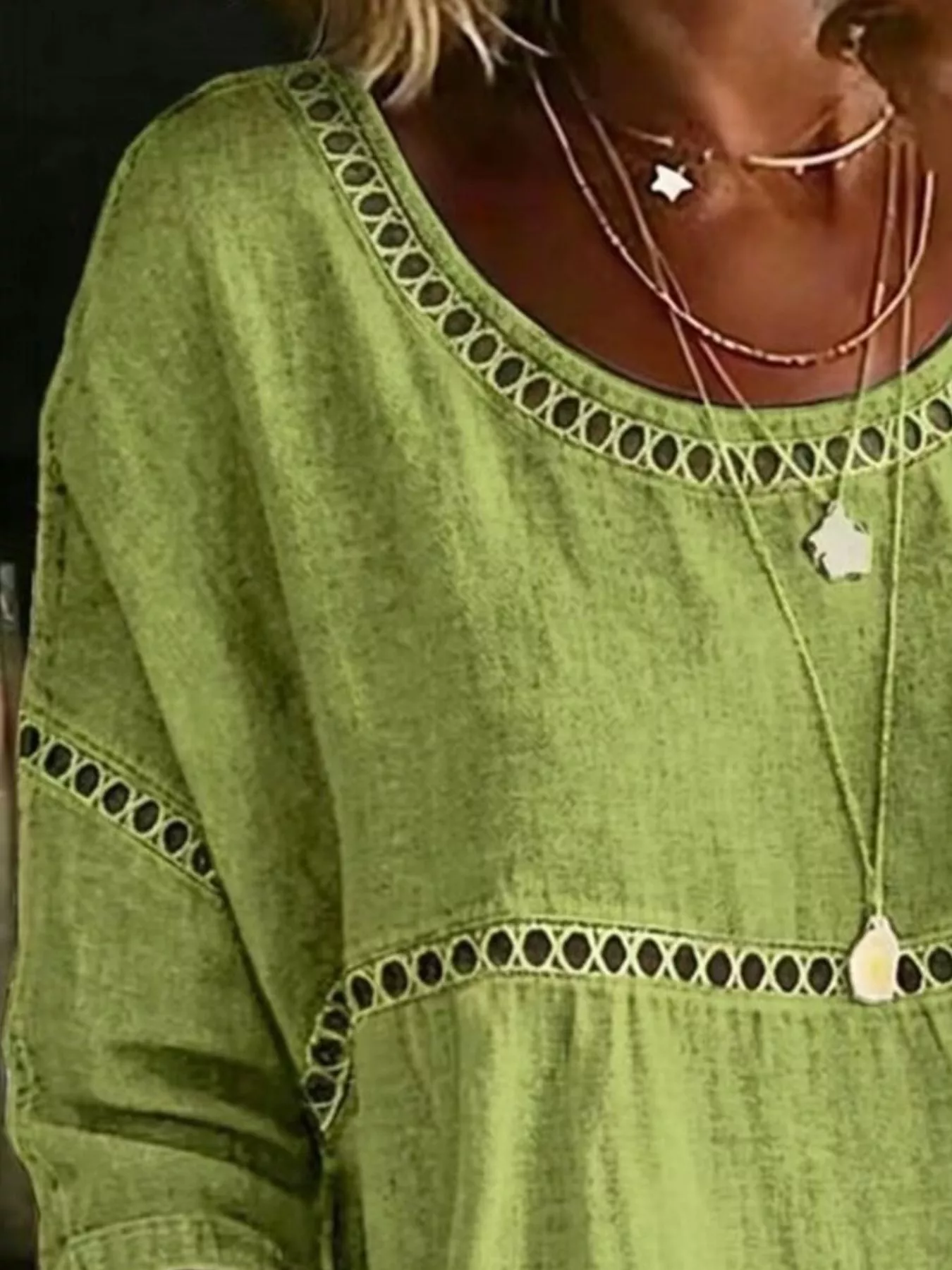Full Size Hollow Out Round Neck Top Plus Size