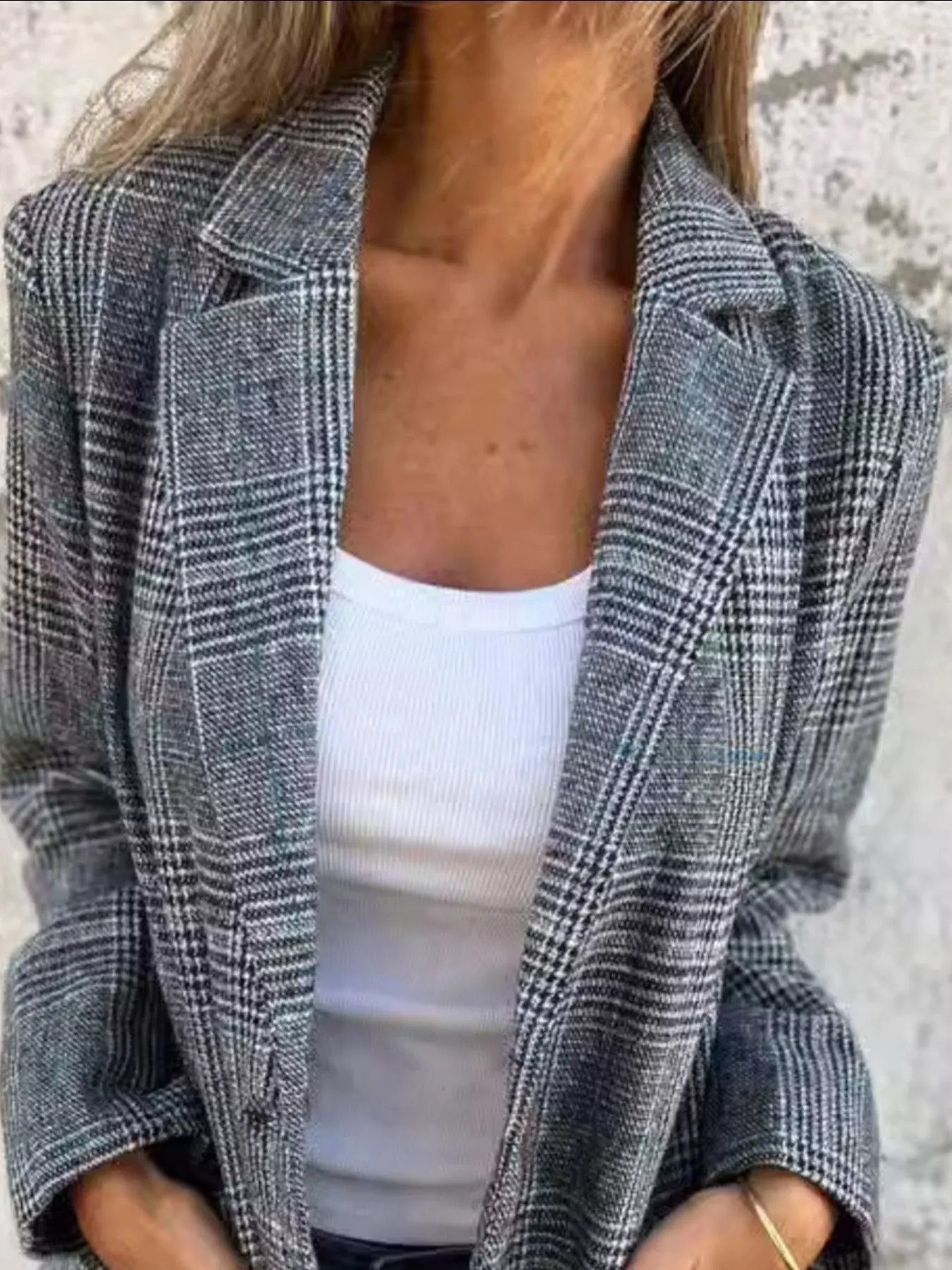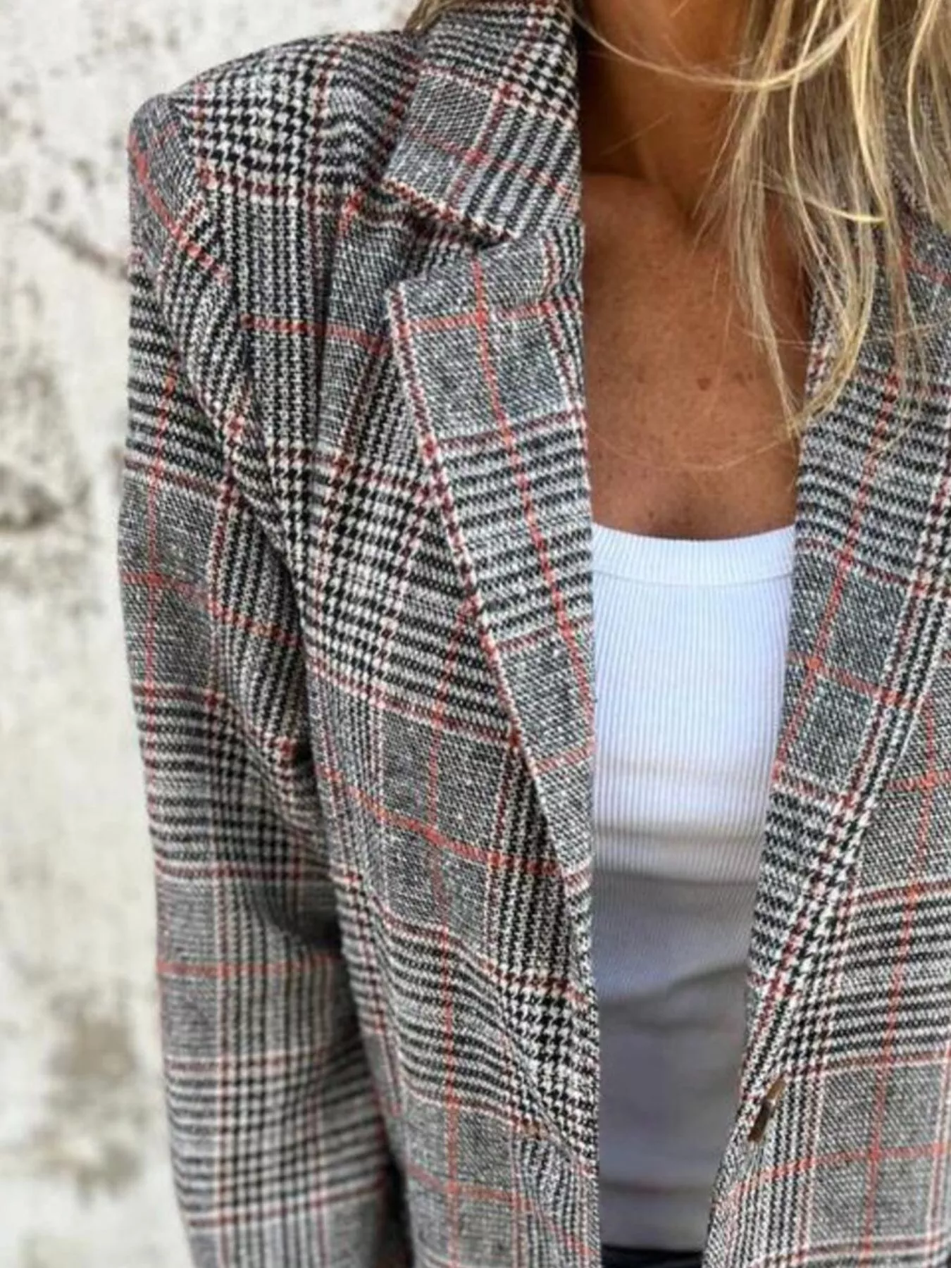 Full Size Plaid Single-Breasted Long Sleeve Blazer Plus Size