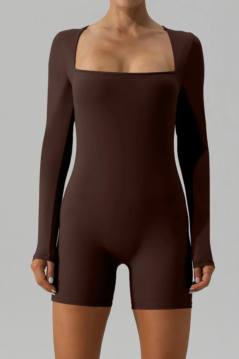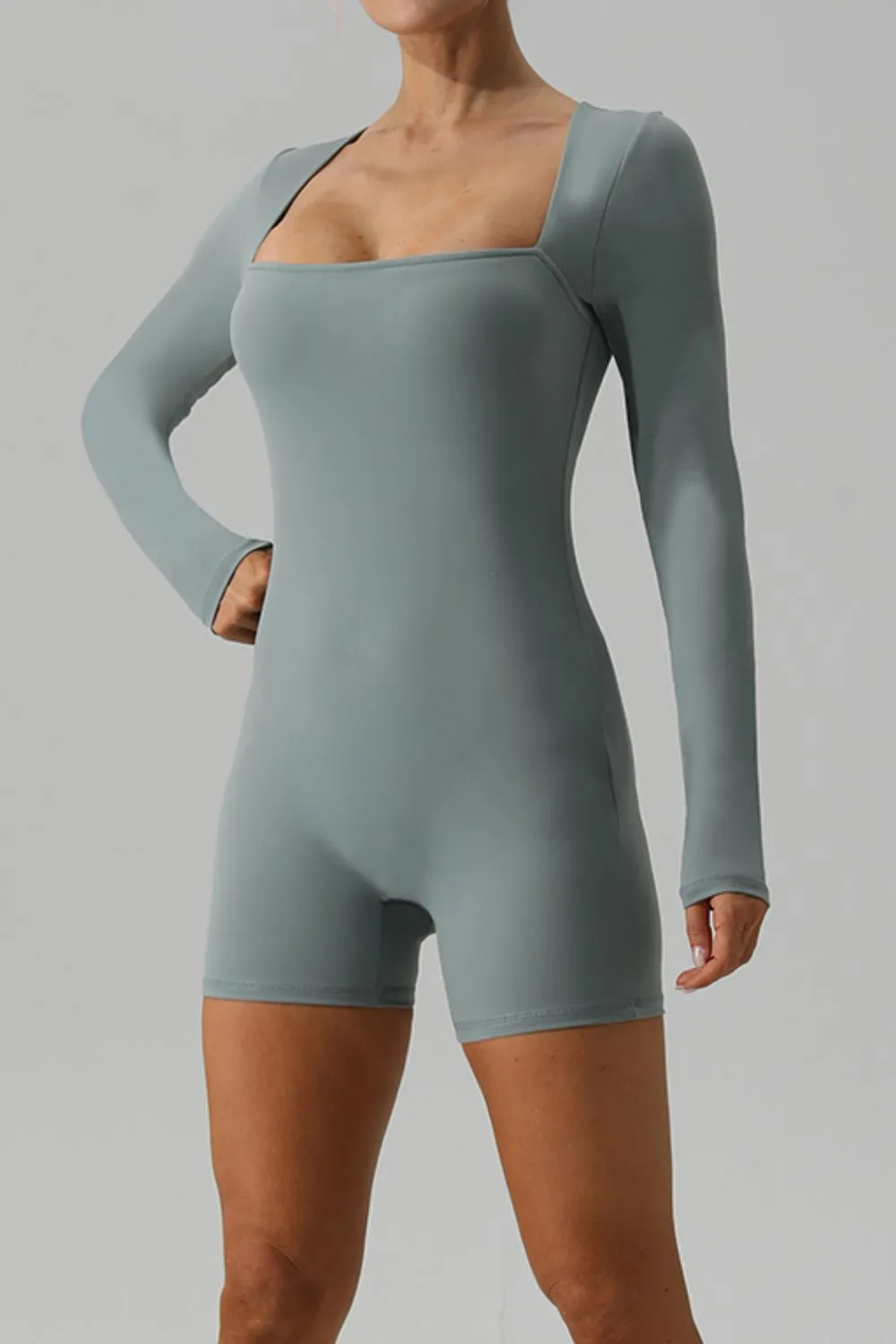 Square Neck Long Sleeve Active Romper